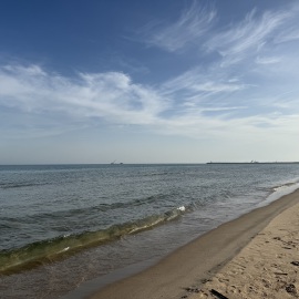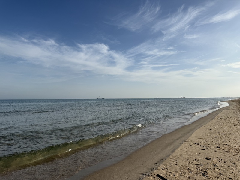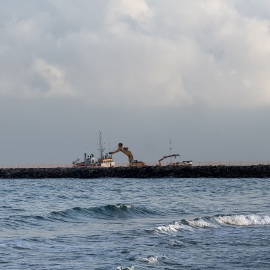 In der Zwischenzeit mache ich mich auf den Weg an den Strand und komme erst mal nicht weit, denn ich "verquatsche" mich, mit der ersten WoMo-Nachbarin in der Reihe und werde sogleich mit super schönen Glücksbringern beschenkt. So eine schöne Geste. *freu* Nach einem Schwätzchen laufe ich am Strand entlang bis an den Fluss und entdecke wieder den einen oder anderen Schatz für mich. In Richtung Leuchtturm kann man zur Zeit nicht laufen, da hier eine Großbaustelle ist... Was genau gemacht wird, weiß ich allerdings nicht. Mein Lieblingsmensch vermutet, dass das Flussbett evtl. vergrößert wird, da riesige Felsbrocken nach oben gebracht werden.