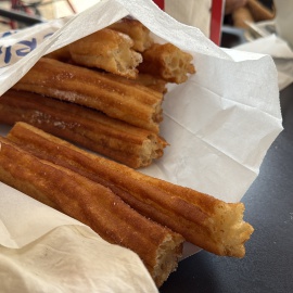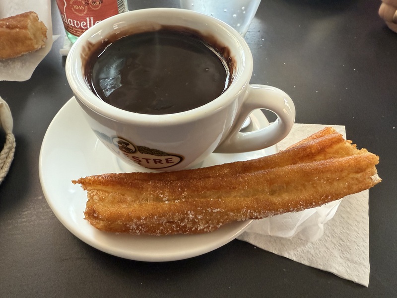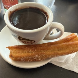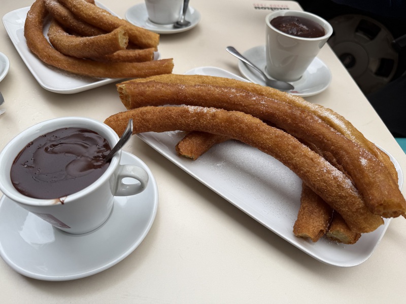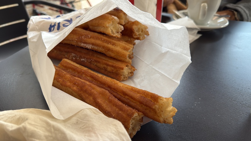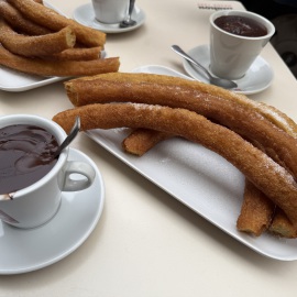 Mit meinen Eltern haben wir uns nochmal zum Frühstück verabredet. Nach einem kleinen Morgenspaziergang landen wir an einem Straßen-Café mit "churros con chocolate". Leider ist es heute sehr kalt und somit ist es doch recht ungemütlich, da man mit Hund nicht in die Lokale rein darf. Es schmeckt anders als sonst - ist ja auch ein anderes Lokal... - und die Stimmung ist genau so trüb wie das Wetter auch. Wie immer, wenn es heißt Abschied nehmen...