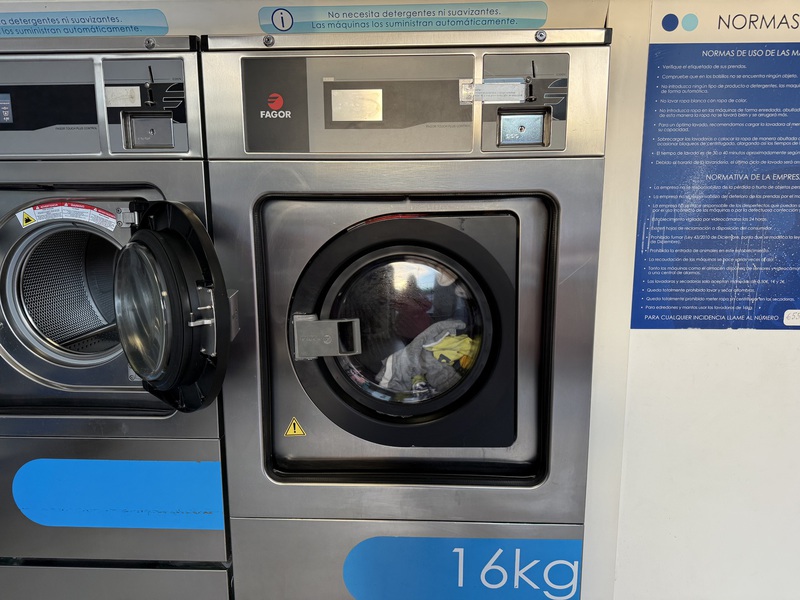 Als allererstes wird natürlich die Trude startklar gemacht und wir fahren an die Repsol-Tankstelle an der großen Brücke "Puente de la Vega". Leider können sie uns hier weder mit Propan-Gas noch mit Wasser aushelfen und das Benzin ist hier auch mega-teuer. Also fahren wir knappe 10m weiter um uns in dem Waschsalon um unsere Wäsche zu kümmern. Der Waschgang in der großen Waschmaschine kostet 6,00€ und es passt alles auf einmal rein. Prima! Nach nur 30 Minuten ist schon alles fertig. Und Waschmittel gibt es gratis dazu. Der Trockner lässt sich allerdings Zeit. Ganze 4x muss ich ihn anstellen für je 15 Min. à 2,00€. Allerdings trockne ich dieses Mal auch alles "nur" bei 60°C und nicht wie beim letzten Mal bei 80°C - und dann ist alles wieder zwei Nummern kleiner... Nein, nein, dieses Mal passiert mir das nicht. *lach*