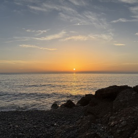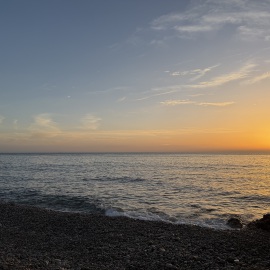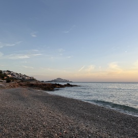 Bevor die Sonne ganz verschwindet laufen wir noch eine Runde am Strand spazieren und dieses Mal in der Tat im Sand entlang. Iliana scheint bis jetzt noch keine Wasserratte zu sein, denn sie meidet sowohl das Meer als auch jede Pfütze die sich gebildet hat. Selbst als ich die eine oder andere Pfütze überspringe, rennt sie lieber einmal um die Pfützen herum, anstatt mir zu folgen. Doch wer weiß, vielleicht kommt es ja noch.
