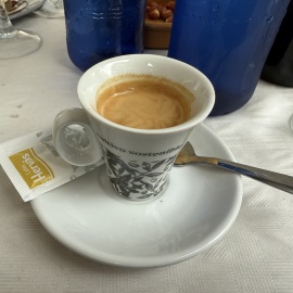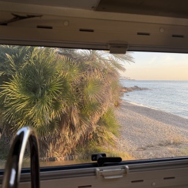 Danach hole ich meinen Papa im Altersheim ab, um mit ihm Kaffee trinken zu gehen. Mein Lieblingsmensch und Iliana erwarten uns schon an der Strandpromenade und gemeinsam suchen wir eins der wenigen Cafés auf, die jetzt im Winter und unter der Woche geöffnet haben. Selbstverständlich gönnen wir uns alle drei einen Carajillo - also Espresso mit Schuss - man gönnt sich ja sonst nichts... Wie immer super lecker, wobei mir die "angezündete" Version - hier CREMAET genannt - noch besser schmeckt. Den gibt's nur leider in diesem Café nicht. Schade. Da es um 17.30Uhr doch recht frisch ist, bringen wir kurze Zeit später meinen Papa wieder zurück und kuscheln uns in der Trude ein.