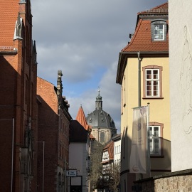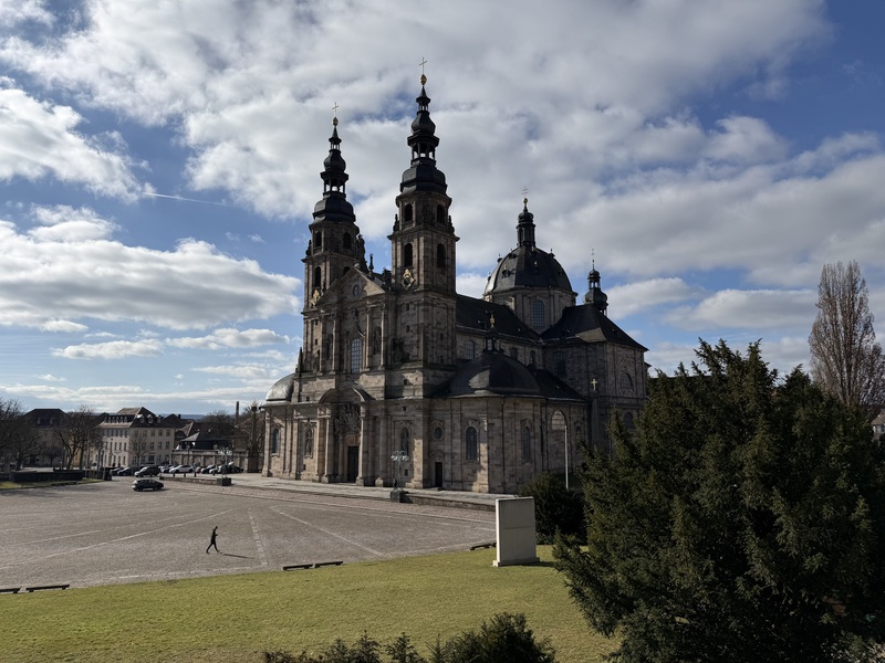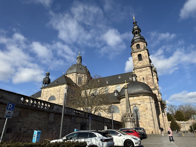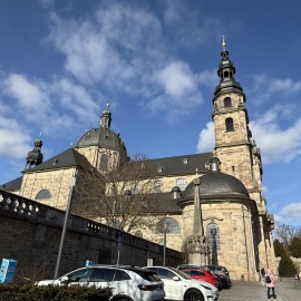 Heute fahren wir bis nach Fulda und stellen uns auf den großen Parkplatz auf der Weimarer Straße, der sich in der Nähe vom Barockviertel befindet. Nach kurzer Zeit sind wir auch schon mittendrin und schauen uns dieses Viertel an. Dom, Schloss, Kirchen, alte Häuser - alles ist dabei...