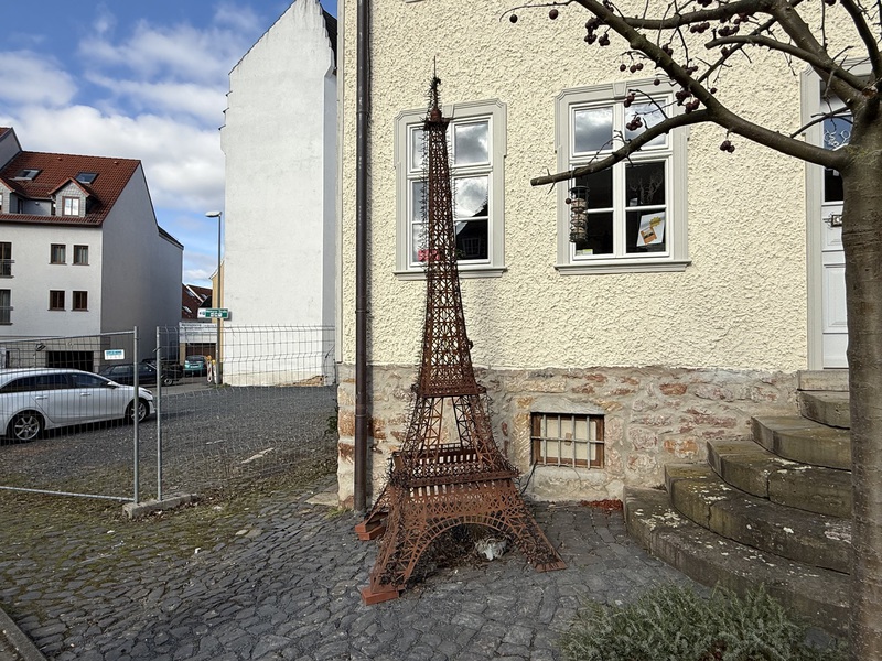 Unser erster Tripp führt uns heute nach Nidda. Im Radio hat mein Lieglingsmensch gehört, dass es hier Kräppel mit Currywurst-Füllung geben soll und die möchten wir unbedingt mal probieren. Einen Parkplatz finden wir recht schnell und auch die Bäckerei ist gleich gefunden. Wir setzen uns gemeinsam mit einem anderen Pärchen, das auch gerade gekommen ist an einen Tisch, da sonst alle Tische besetzt sind, und wie von selbst entsteht ein herrliches Gespräch bei dem wir viel lachen - vor allem über diese eigenartige Kombination. Geschmacklich ist es naja... Wir sind uns einig, dass das Ganze warm serviert werden müsste und leider haben sie kleine Nürnberger-Rostbratwürste statt normaler Bratwurst genommen, dadurch ist die Wurst etwas trocken und schmälert das Geschmackserlebnis. Doch sonst kann man den außergewöhnlichen Kräppel essen... Mit Hering oder Hackepeter, wie es wohl schon mal gab, kann ich es mir allerdings nicht wirklich vorstellen. Diese Bäckerei bringt jedes Jahr eine neue Kreation auf den Tisch und hat es damit schon ein paar Mal in die Zeitung geschafft. Ideen muss man haben.