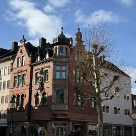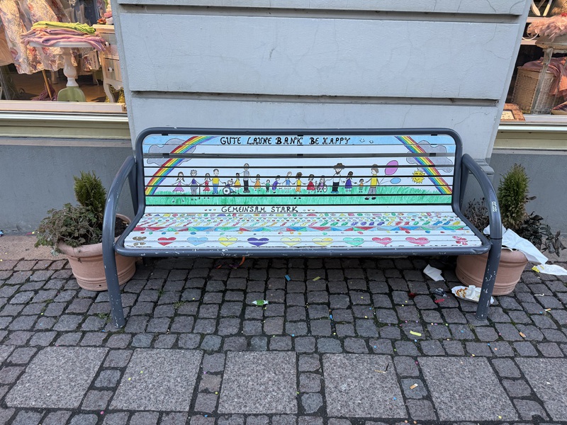 Nach dem wir die lange Strecke bis zum Brauhaus gelaufen sind, stellen wir fest, dass es zum einen jetzt sehr schmutzig auf den Straßen ist - im Vergleich zu heute Morgen, denn während unserer Ausruh-Zeit hat hier der Kinder-Fastnachts-Umzug stattgefunden - und dass das Brauhaus heute komplett geschlossen hat. Wie doof! Hätten wir ja mal vorher richtig schauen können...