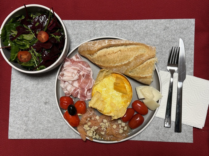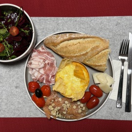 Große Lust zum Kochen habe ich heute keine, daher entscheiden wir uns für einen Ofenkäse und ein bisschen Salat. Letztendlich ist es dann doch ein "Technicolor"-Teller geworden. So haben wir es als Kinder immer genannt, wenn der Teller mir allerlei Kleinigkeiten gefüllt war - schön bunt, Technicolor eben... Das war für unsere Eltern so faszinierend, als es vom schwarz-weiß TV zu "technicolor" wurde. So ist dieser Ausdruck damals in meiner Family entstanden und das ist irgendwie in unserem Sprachgebrauch so geblieben. Heute steht noch ein Date mit "Sylvester Stallone" an und dann wieder ab ins Bett... *lach*