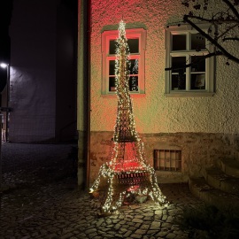 Nach einem eiskalten "Verdauungsspaziergang" zurück zur Trude, sitzen wir noch gemütlich zusammen und spielen eine Runde Kniffel. Danach geht's in die Heia. Und wir hoffen mal, dass uns die Kirchenglocken - direkt gegenüber - Morgen früh auch schlafen lassen...