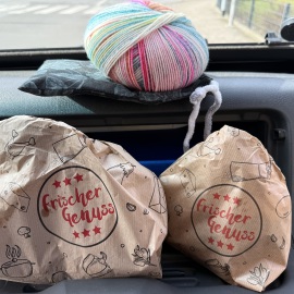 Auch heute lasse ich den Tag gemütlich anlaufen. Steht bis heute Abend ja auch nichts an... Ich kann und darf also wieder die Zeit mit mir genießen und ein wenig kreativ werden... Immerhin, die grünen Socken sind schon um ein paar Reihen gewachsen... *lach*